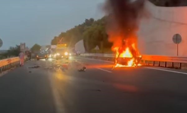 Όπως αναφέρουν οι ίδιες πληροφορίες, το αυτοκίνητο έφερε τούμπες στον αέρα πριν πέσει στο κράσπεδο και τυλιχθεί στις φλόγες.