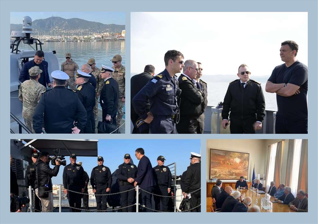 Ο Υπουργός, συνοδευόμενος από τον Αρχηγό Λ.Σ – ΕΛ.ΑΚΤ. Αντιναύαρχο Λ.Σ. Τρύφων Κοντιζά, επισκέφθηκε την έδρα της Γενικής Γραμματείας Αιγαίου και Νησιωτικής Πολιτικής (ΓΓΑΝΠ) όπου τον υποδέχθηκε ο Υφυπουργός Ναυτιλίας και Νησιωτικής Πολιτικής, Στέφανος Γκίκας και πραγματοποίησε ευρείες διαδοχικές συσκέψεις με εκπροσώπους φορέων του νησιού και της τοπικής αυτοδιοίκησης αλλά και εκπροσώπους των Ενόπλων Δυνάμεων και των Σωμάτων Ασφαλείας. Στο επίκεντρο των συζητήσεων βρέθηκαν ζητήματα που αφορούν στην τοπική κοινωνία, στις ανάγκες και στις υποδομές του νησιού, καθώς και το μείζον θέμα της παράνομης μετανάστευσης και της εξελισσόμενης δραστηριότητας των κυκλωμάτων λαθρεμπόρων και διακινητών. Ο κ. Κικίλιας ευχαρίστησε όλους τους εκπροσώπους για την άρτια συνεργασία ως προς την αντιμετώπιση και διαχείριση του φαινομένου αλλά και την συνεχή προσπάθεια για την προστασία και υπεράσπιση των θαλασσίων συνόρων της χώρας.