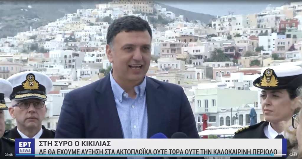Την επίτευξη του στόχου να μην υπάρξει απολύτως καμία αύξηση στις τιμές των εισιτηρίων, ούτε τώρα ούτε καθ’ όλη τη διάρκεια της καλοκαιρινής περιόδου, μετά και από σχετική επιβεβαίωση της αγοράς, ανακοίνωσε ο Υπουργός Ναυτιλίας και Νησιωτικής Πολιτικής Β. Κικίλιας από τη Σύρο. «Πρώτα απ’ όλα καλό μήνα, με καλά νέα, όπως επιβεβαίωσε ήδη από το πρωί και η αγορά. Καμία αύξηση στις τιμές των ακτοπλοϊκών εισιτηρίων, ούτε τώρα ούτε καθ’ όλη τη διάρκεια της καλοκαιρινής περιόδου, με ασφάλεια, καλά ταξίδια σε όλους και καλές θάλασσες.» , δήλωσε χαρακτηριστικά στα τοπικά μέσα του νησιού. Και πρόσθεσε: «Θα συνεχίσουμε να δουλεύουμε σε αυτή την κατεύθυνση, να στηρίξουμε την ελληνική οικογένεια, στη δυνατότητα που δεν είναι πολυτέλεια αλλά είναι πάρα πολύ σημαντική για εμάς, να ταξιδεύει από τους ηπειρωτικούς προορισμούς της χώρας μας και τα μεγάλα λιμάνια μας σε όλα τα νησιά μας.».