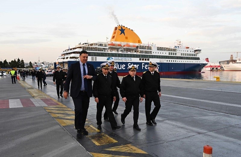 Επίσκεψη του Υπουργού Ναυτιλίας και Νησιωτικής Πολιτικής Βασίλη Κικίλια στο Λιμάνι του Πειραιά ενόψει της εορτής του Πάσχα.