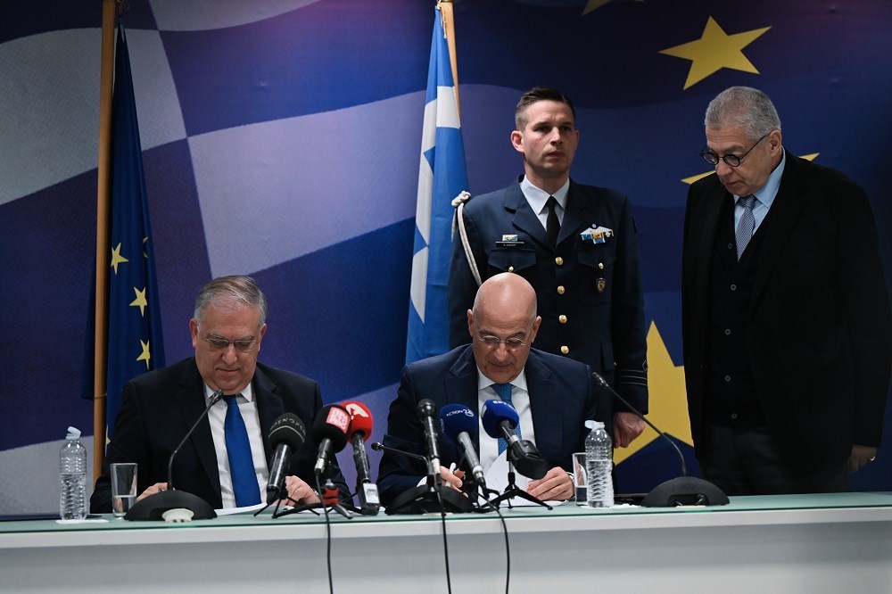 Υπεγράφη από τους υπουργούς Εθνικής Άμυνας, Νίκο Δένδια και Ανάπτυξης, Τάκη Θεοδωρικάκο, η σύμβαση για το πρόγραμμα «Θώραξ», που χρηματοδοτείται από το υπουργείο Ανάπτυξης με 48.950.000 ευρώ από πόρους του Ταμείου Ανάκαμψης. Η τελετή έλαβε χώρα στην αίθουσα εκδηλώσεων του υπουργείου Ανάπτυξης παρουσία του Υφυπουργού Ανάπτυξης Σταύρου Καλαφάτη, των Γενικών Γραμματέων Ιδιωτικών Επενδύσεων Στελλίνας Σιαράπη, Έρευνας και Καινοτομίας Τάσου Γαϊτάνη και Εθνικής Άμυνας Αντώνιου Οικονόμου και των εκπροσώπων των αναδόχων Αλέξανδρου Μπρέγιαννη από τη NOVA και Αλέξανδρου Κούτρη από την Cosmos Business Systems.