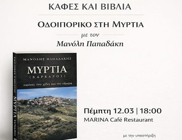 Λέσχη Ανάγνωσης :«Ένα οδοιπορικό στην αγαπημένη Μυρτιά του χθες και του σήμερα»